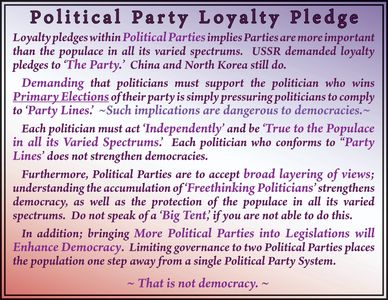 Political parties have been controlling populations and governance since their inception. No matter how people feel about such governing orders, each person is subject to the influence echelons possess within political parties, even when people declare themselves independent.
