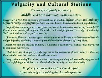 Vulgarity in cultures is not needed, nor should it become a normal view of how mature people behave.